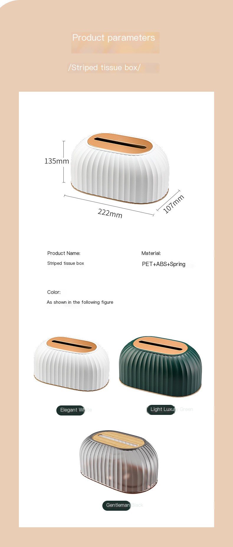 Crafted from high-quality plastic, this tissue box showcases a style that is both light luxury and contemporary, making it a chic addition to your home décor. Choose from a palette of elegant colors, including: