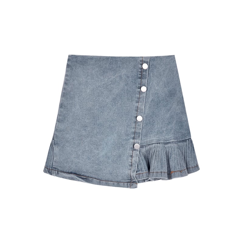 Crafted with a lightweight and pleated design, this skirt effortlessly flatters your silhouette while providing the freedom to move. The classic wash blue color adds versatility, allowing it to be paired with any top for a casual yet polished look.
