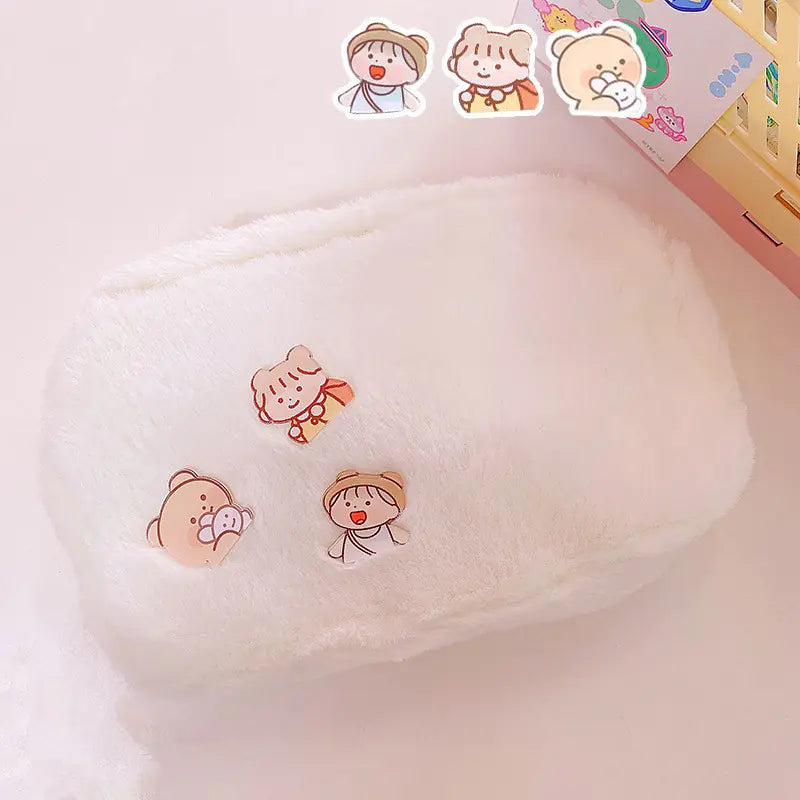 Korea Plush Cosmetic Bag - Large Capacity Pencil Case