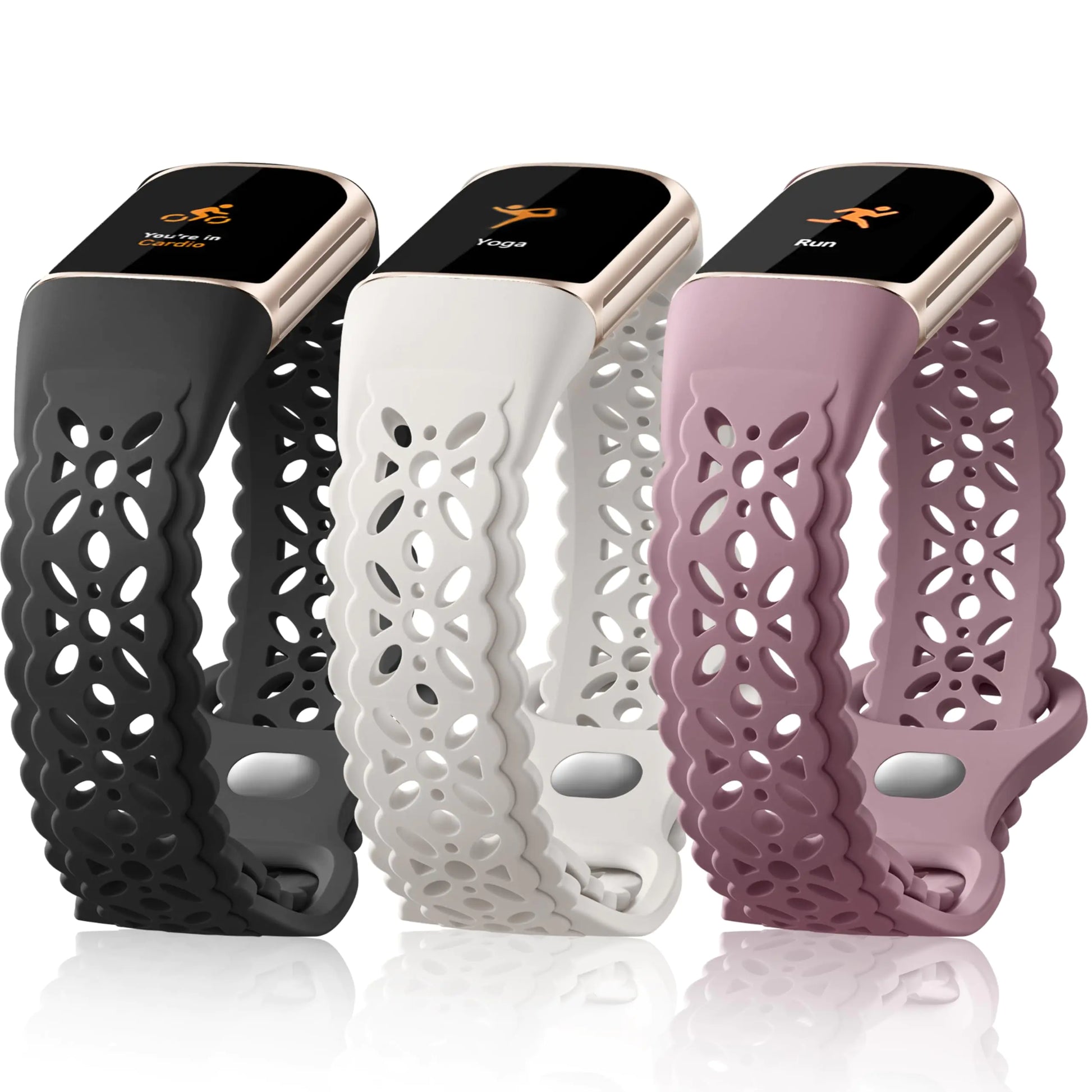 [🌼【Chic Lace Floral Design】Come with dual layers of lace edges Maledan charge 6 bands also use unique hollow-out craftsmanship to carve the shape of lilac flowers. Different from the boring look of other bands our bands are both dimensional and exquisite adding an elegant yet adorable touch to your watch earning numerous praises for you 🌼【Comfy and Breathable to Wear】Made of high-grade soft silicone material these floral engraved bands for Fitbit Charge 6/ Charge 5 are flexible lightweight and comfortable. More air holes will allow the wind and liquid to pass easily stay cool and dry feeling all day long the best choice for exercise or sport "🌼【Easy to Adjust】Maledan bands are compatible with Fitbit Charge 6 bands for women and Fitbit Charge 5 bands. The hollow design provides multiple holes for adjusting the length. Suitable for wrist sizes 5.5 to 8.2 inches (140mm to 210mm) fits large or small wrist great. If you have SMALL WEISTS & dont like the band slide around on your wrist try this one" 🌼【Feels Secure on Your Wrist】Our floral sport bands for Fitbit Charge 5/ Charge 6 come with precise connectors locking your tracker more tight and compact. With loop and peg closure and metal buckle this sport band is safe and firm also easier to take on and put off. Say goodbye to the worry of losing your watch "🌼【Ideal Gift Choice】Features a pretty lace and floral pattern these breathable sport bands can be a fantastic gift at Christmas Valentines Day Birthday Fathers Day or Mothers Day for your family and friends. Plus we provide 7*24 hours after-sales service. FREE replacement or REFUND with any quality problem to ensure your satisfaction"]