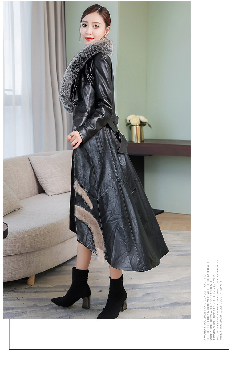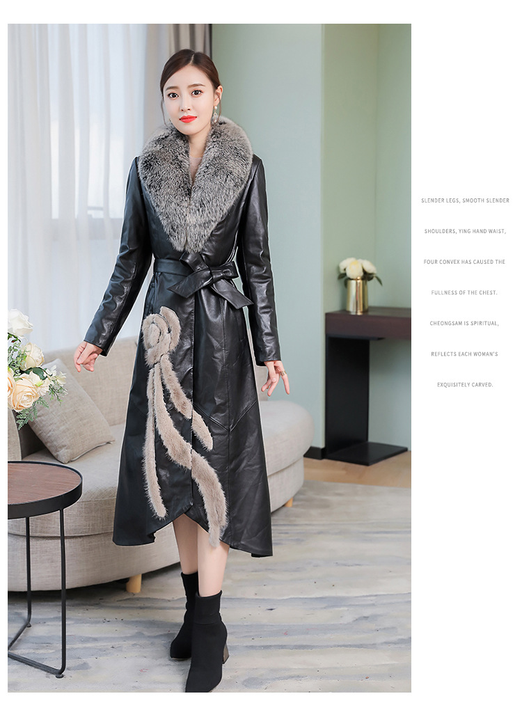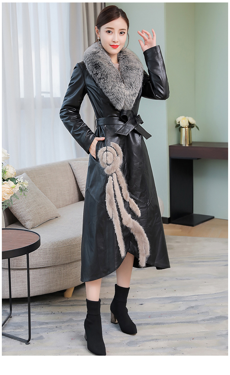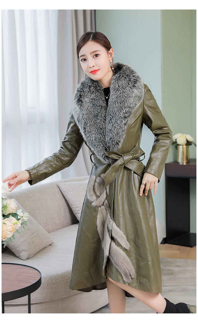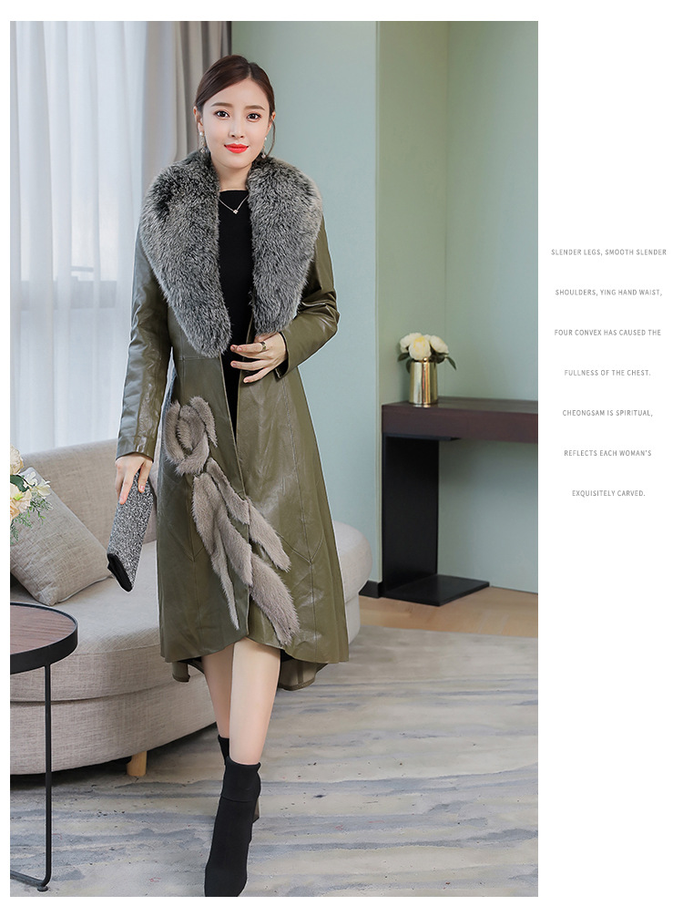 Mink Fox Fur Down Coat - Mid-Length Trench Jacket