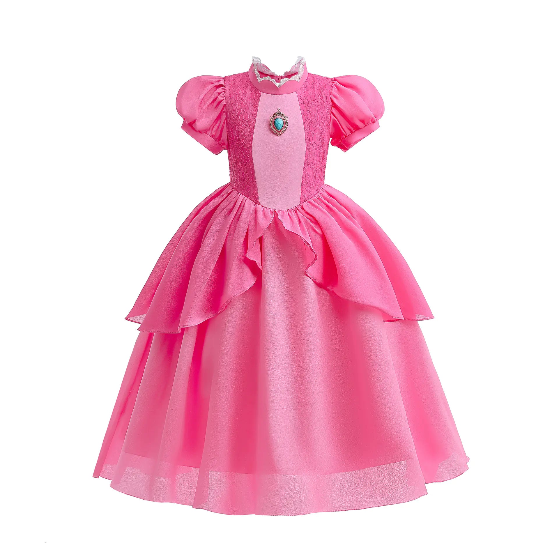 Step into a world of adventure and imagination with our exquisite Princess Peach Cosplay Dress. Designed for young dreamers and fans of the beloved gaming franchise, this enchanting dress embodies the spirit of princesses everywhere. Crafted from high-quality nylon, it ensures comfort and style, making it perfect for summer wear.