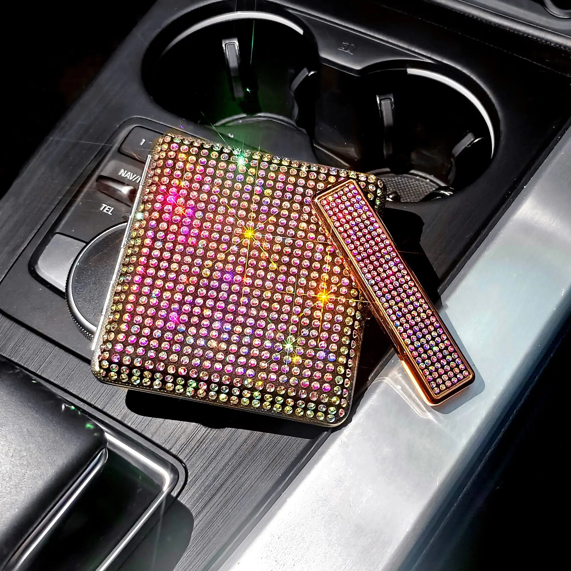 Rhinestone Lighter Electric Lighter Rechargeable Bling Glitter with Cigarette Case 85mm King Size (18-20 Capacity) USB Lighter Set 2pcs Flameless Girls Lighter for Women (Multi)
