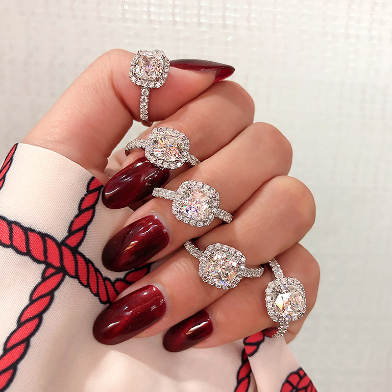 S925 Silver Luxury Moissanite Engagement Ring for Women