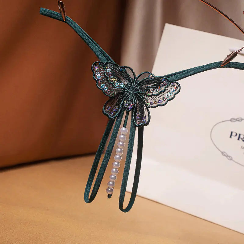 Transparent Pearl-Embellished T-Back Women's Panties